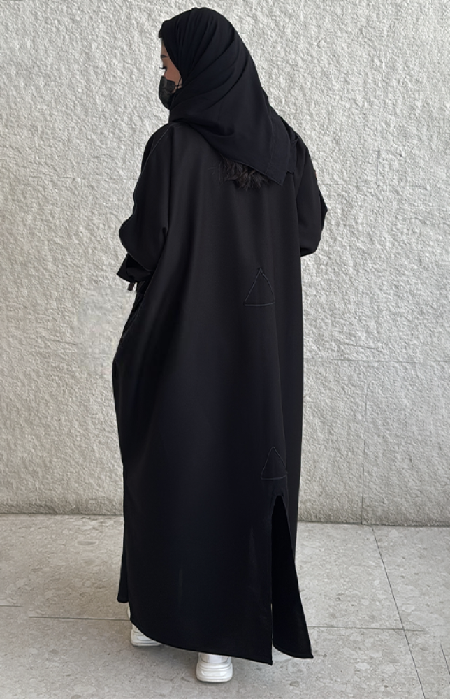 - طول العباية يؤخذ من الكتف الى أسفل الكعبين (من الأمام)