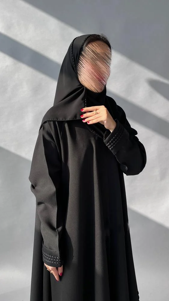 - طول العباية يؤخذ من الكتف الى أسفل الكعبين (من الأمام)